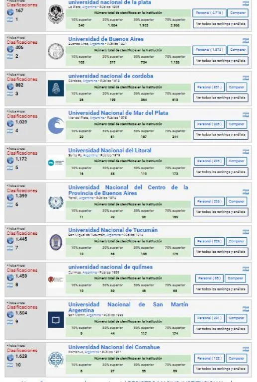 A escala mundial, la muestra comprende a 2.250.000 científicos y científicas pertenecientes a 24.250 instituciones, incluidas 18.000 universidades, 9.800 universidades públicas, 11.012 universidades privadas, 3.500 institutos, 2.500 empresas y 350 hospitales.