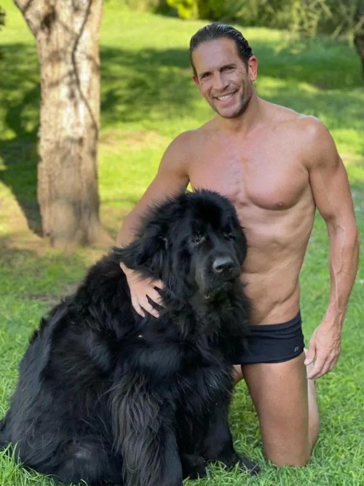 Porthos era de la raza Terranova, tienen un gran pelaje que resiste al agua y además son perros dóciles, tranquilos y leales. Pueden compartir tranquilamente un ambiente familiar como día a día lo mostraba el actor en sus redes sociales.