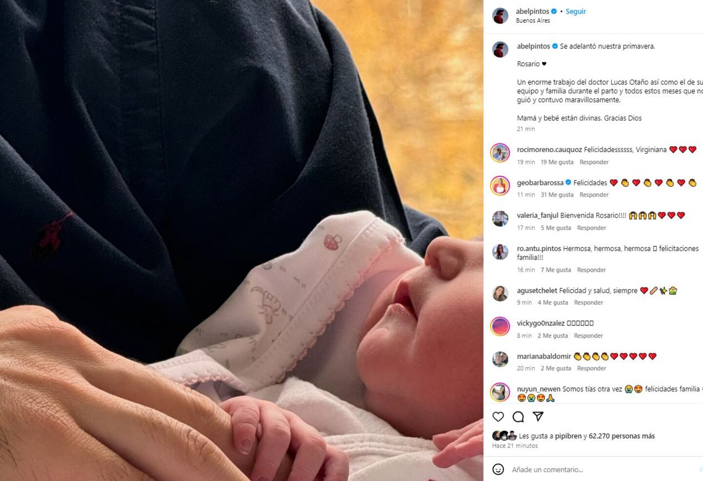 En el epígrafe que acompaña la imagen, Pintos expresó su agradecimiento y alegría: “Se adelantó nuestra primavera. Rosario ♥️ Un enorme trabajo del doctor Lucas Otaño, así como el de su equipo y familia durante el parto y todos estos meses que nos guió y contuvo maravillosamente. Mamá y bebé están divinas. Gracias Dios”.El artista no pudo ocultar su felicidad por la llegada de la pequeña, quien ya ha enternecido a sus seguidores y fanáticos con esta publicación tan especial. La familia Pintos-Calabrese atraviesa este nuevo capítulo con mucho entusiasmo y agradecimiento, sumando un nuevo integrante que llenará de aún más alegría su hogar.