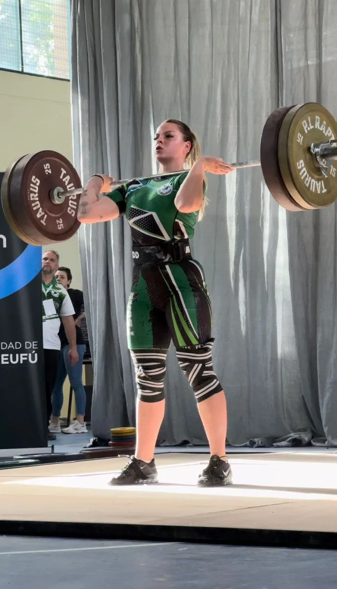 La atleta barilochense fue triple campeona nacional en 2023, y volvió a la competencia luego de mudarse a Santiago de Chile y sufrir algunas lesiones que la obligaron a bajar la intensidad de los entrenamientos y las competencias para recuperarse. Este fin de semana, volvió a participar en el certamen regional realizado en Picun Leufu, en el que levantó 80 kilos en modalidad Arranque y 104 kilos en Envión.