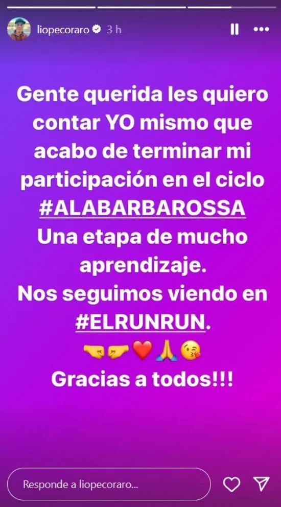 El 27 de noviembre marcó un hito en la vida profesional de Lío Pecoraro y, probablemente, también en el devenir de “A la Barbarossa”. En un paso que parece ser un giro decisivo, el periodista y panelista informó sobre su renuncia a través de sus redes sociales agradeciendo al público, pero dejando en el aire los verdaderos motivos que lo llevaron a dejar el programa. Este silencio inicial dio pie a un mar de especulaciones, entre las cuales sobresale la sombra de posibles tensiones internas que pudieron haber precipitado su salida.