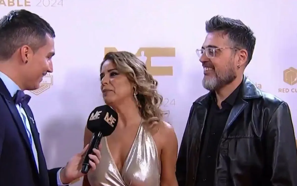 Marina Calabró, una figura significativa en el periodismo de espectáculos, no solo celebraba su participación en esta importante gala, sino que también fue nominada por su "labor periodística 2023", lo cual resaltó con orgullo. La panelista se mostró muy emocionada y feliz de que su pareja la acompañara.