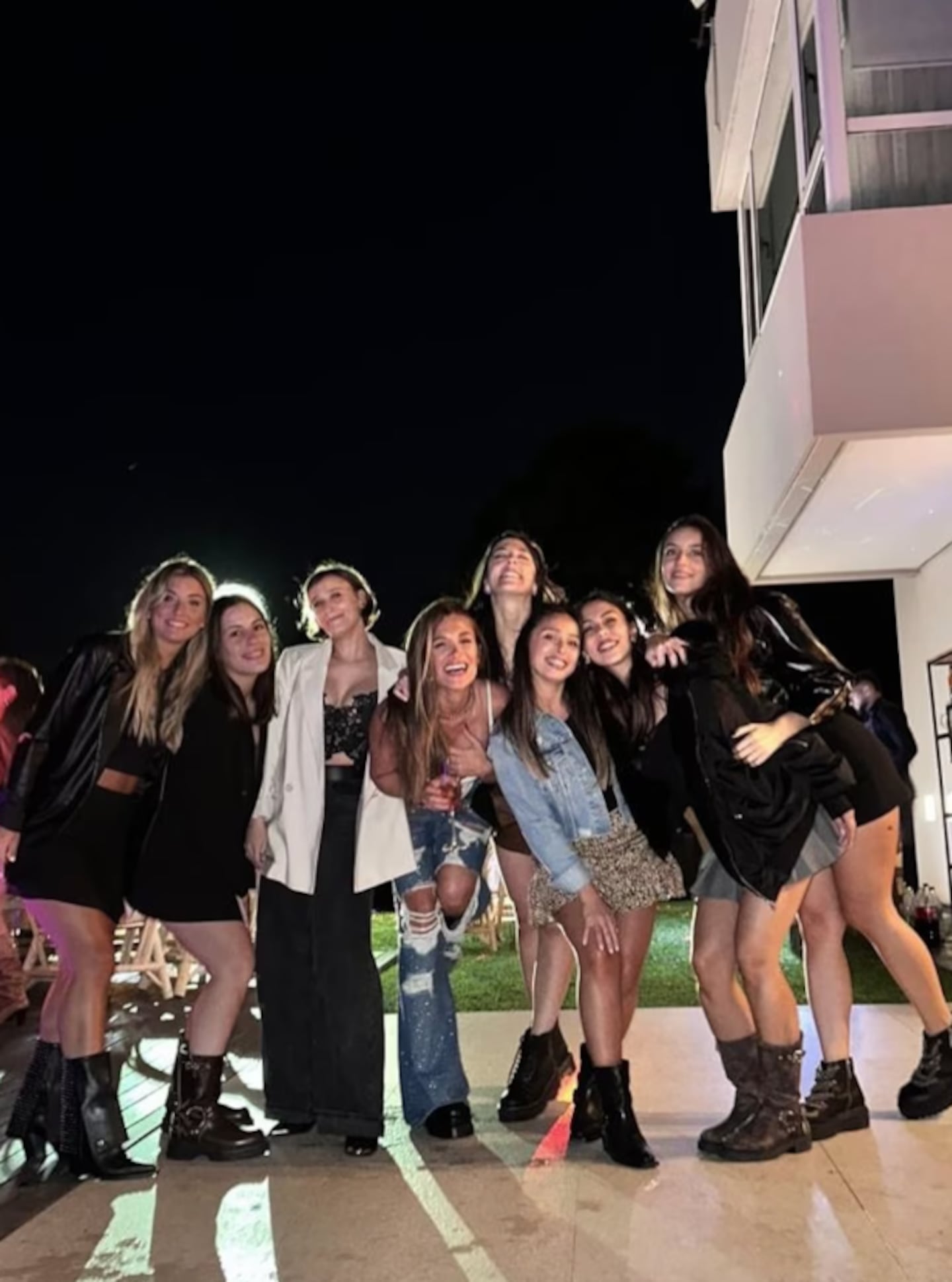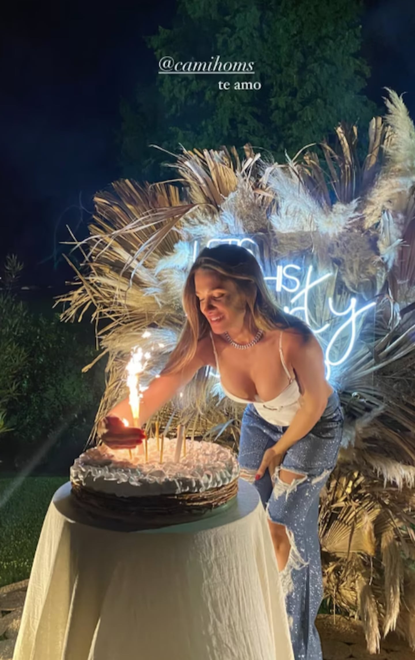 La decoración del cumpleaños de Camila Homs fue uno de los puntos más comentados. Inspirada en un estilo bohemio chic, el espacio al aire libre lució muebles de madera, flores frescas y velas, junto a detalles modernos como un cartel de neón que invitaba a disfrutar: “Let’s get this party started”. Una barra de tragos y tablas gourmet aportaron el toque final para que los asistentes vivieran una experiencia única.Camila Homs eligió un look fresco y sofisticado que marcó tendencia: un corset blanco, jeans estilo Oxford desgastados y botas negras. Este atuendo reflejaba su personalidad, destacando tanto su gusto por la moda como su comodidad para disfrutar al máximo de la celebración. Los invitados no se quedaron atrás, siguiendo una línea de vestimenta igualmente elegante y relajada.Uno de los momentos más esperados de la noche fue el corte de la torta. Fiel a su pasión por la pastelería, Camila optó por un imponente rogel tamaño XL, que no solo deleitó a los presentes sino que también se convirtió en protagonista de las redes sociales.