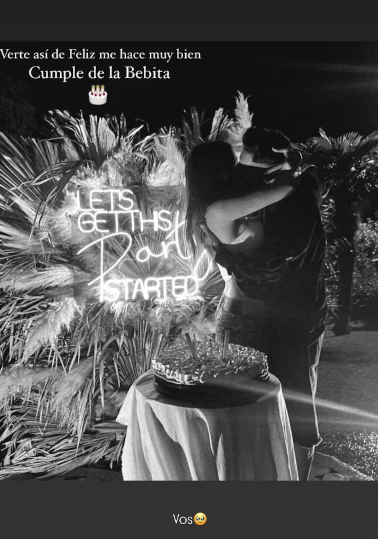 En medio de risas y brindis, José Sosa sorprendió a todos con un gesto romántico: publicó una foto abrazando a Camila y le dedicó unas palabras llenas de cariño. “Verte así de feliz me hace muy bien. Cumple de la bebita”, escribió. Ella, emocionada, respondió con un simple pero significativo “Vos”.