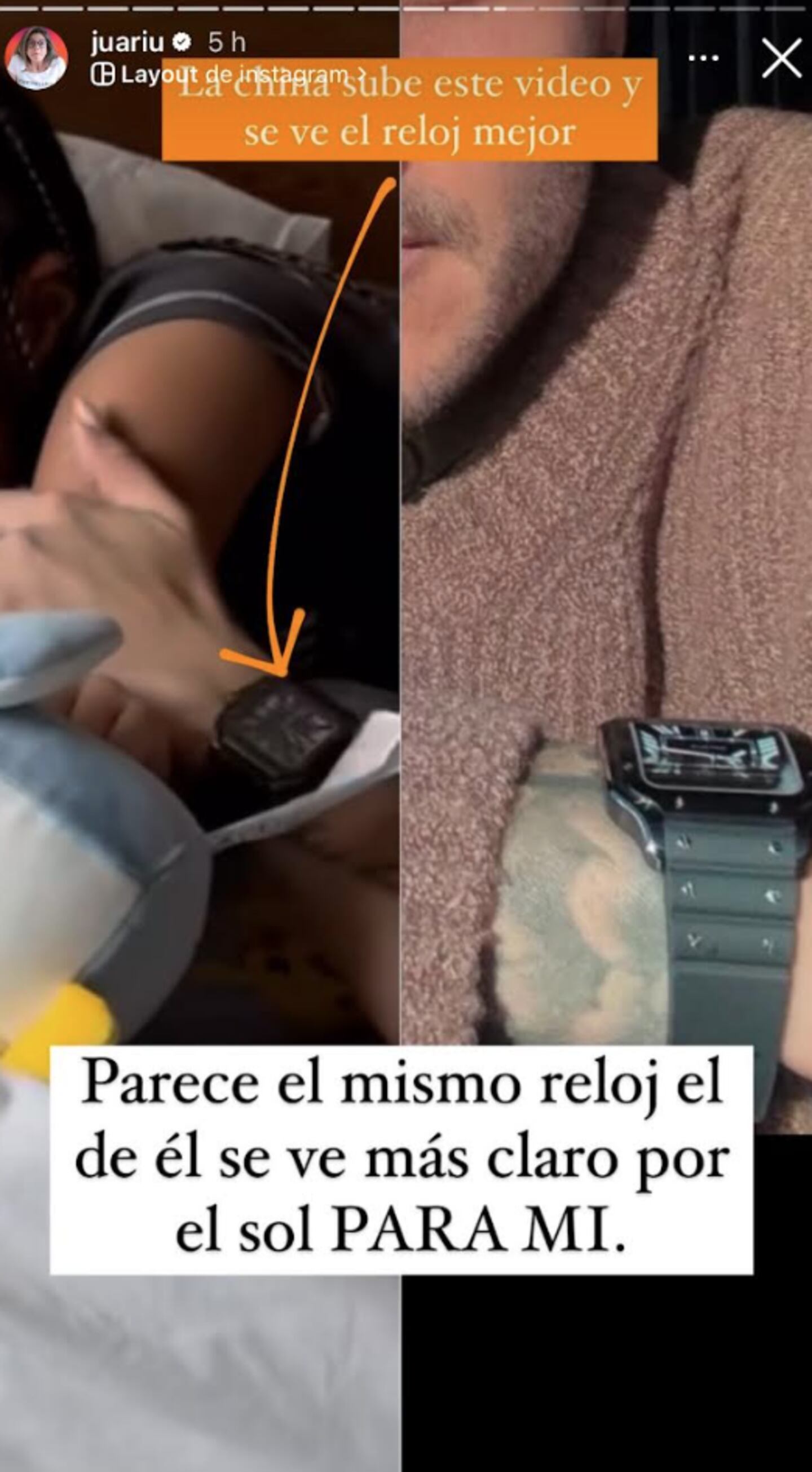 En este contexto, la influencer que descubrió el dato se encargó de publicar las coincidencias que existen, por lo que pueden ser las pruebas del robo o de que el propio jugador se lo regaló y de igual manera culpó a su ex. “Otro dato de color, ¿será el mismo reloj? Ella puso esa foto con el corazón y se ve un reloj, ¿será el de Mauro?”, lanzó Juariu.