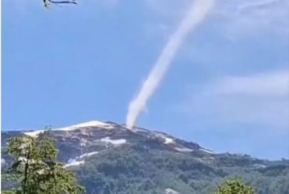 En el marco del paso de una fuerte tormenta que azotó la región patagónica, un fenómeno meteorológico inusual fue captado en las alturas de un cerro cercano a Villa La Angostura
