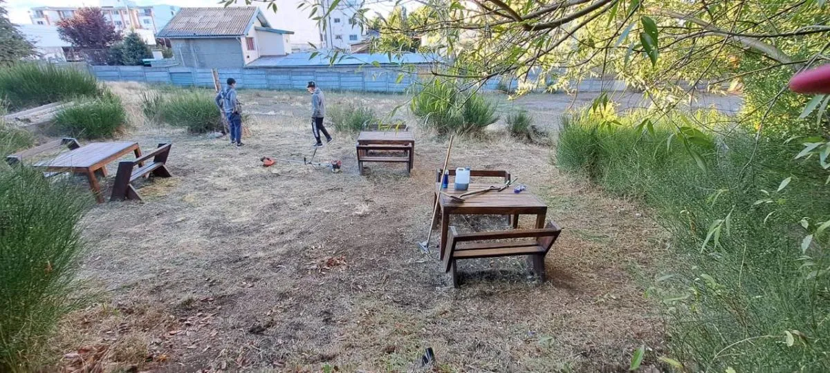 Asimismo, resalta “el aula verde” que se llevó adelante con la colaboración del colegio Qmark y un estudio de abogados con impronta social. Se trata de un espacio en el exterior, con mesas y bancos de madera, al estilo de un refugio, inmerso en un patio con plantas, donde, cuando el clima lo permite, se brindan clases.