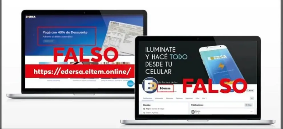 Además, también generaron un perfil falso de Facebook de Edersa, con el que buscan lo mismo. “En la red social también ofrecen un descuento del 40% si el vecino se adhiere a débito automático. Una vez que se hace click, te lleva a la web falsa y de ahí a un formulario que recolecta datos de tarjetas de débito y crédito”, profundizó Pacheco.