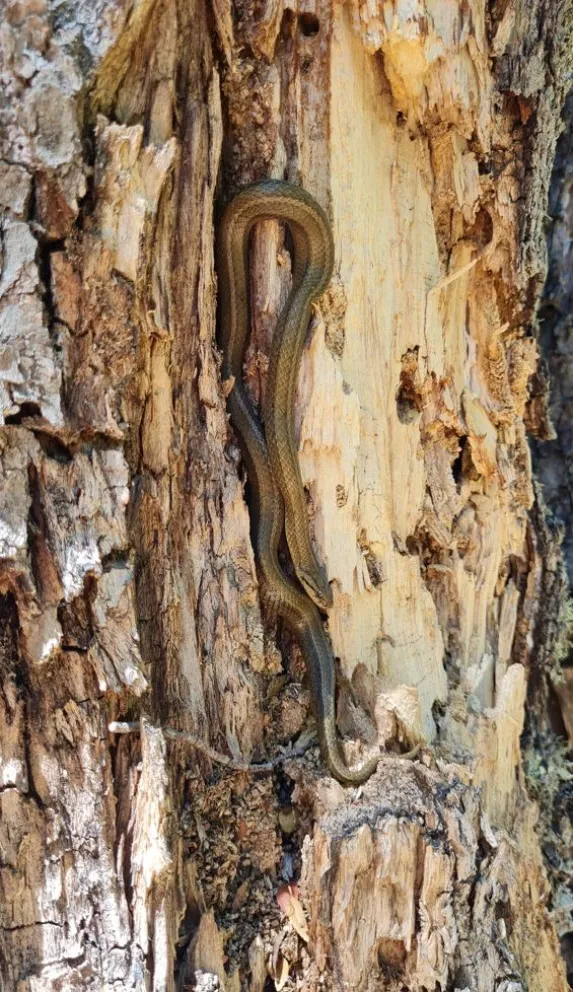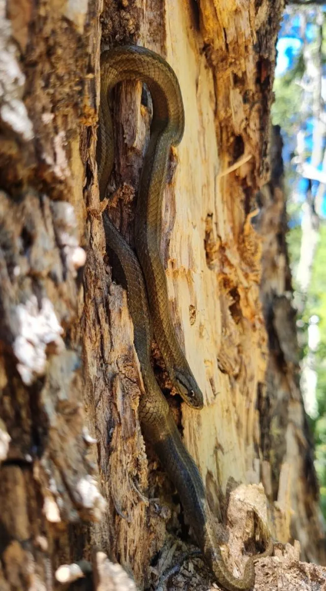 Caminaba por un cerro de Bariloche y casi se agarra de una culebra escondida en un árbol