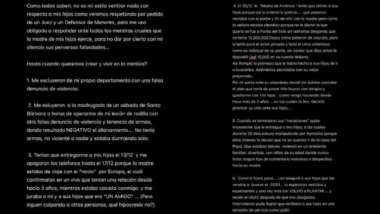 Pero esto no terminó allí, ya que Icardi compartió un duro dato sobre Wanda y qué tiene que ver con el cumpleaños de su hijo y la aventura que tuvo con Keita Baldé: "El 25 de enero de 23 transcurría el cumpleaños de su hijo, a quien sus hermanos/as y familiares se lo estaban festejando y ella llegó a las 23.30, es decir, 30 minutos antes que el cumpleaños de su hijo terminara"