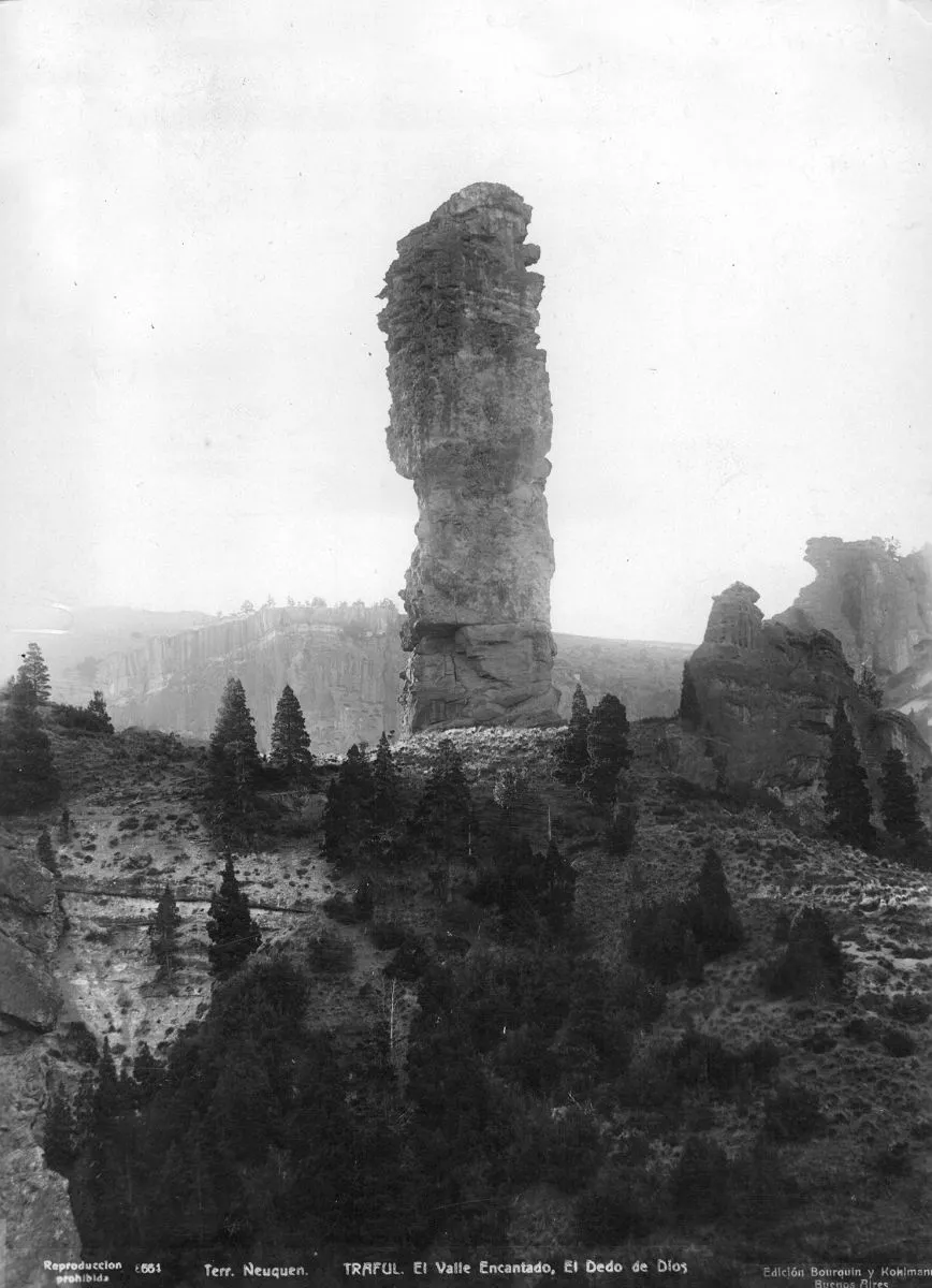 Después de transitar por otras zonas de la actual jurisdicción neuquina, el viajero eslavo dio con paisajes que nos resultarán familiares. “El río Traful y el río de las Manzanas corren entre murallas de andesita que tienen varios cientos de metros de altura y que ofrecen al geólogo las formas más preciosas de segregaciones en forma de columnas. En la embocadura misma como también a la distancia de una legua, subiendo el Limay, se observa una variedad solo comparable a la de los Rocky Mountains (sic) de peñascos de toba volcánica, que tiene el aspecto de columnas y de antiguas ruinas”. Evidentemente, el Valle Encantado.