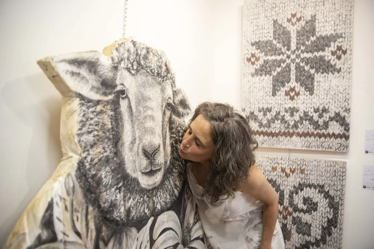 Valeria Fiala demostró “un honor estar exponiendo con ellos. Fernanda fue parte inspiradora de mi proceso creativo cuando llegué a Bariloche y la conocí. El vínculo con la naturaleza nos convoca a las dos”, resaltó. “Para esta muestra traje algo que ya tenía hecho, más una pieza especial que los une. Flora es una oveja, que tiene cabeza de oveja, pero en su cuerpo, hay vegetación, flores autóctonas”, describió la expositora.