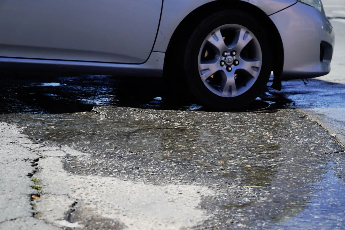 Nueva fuga de agua en plena Avenida 9 de Julio (fotos y video: Facundo Pardo)