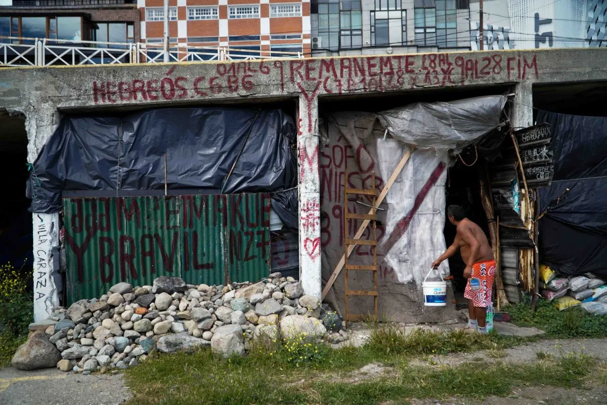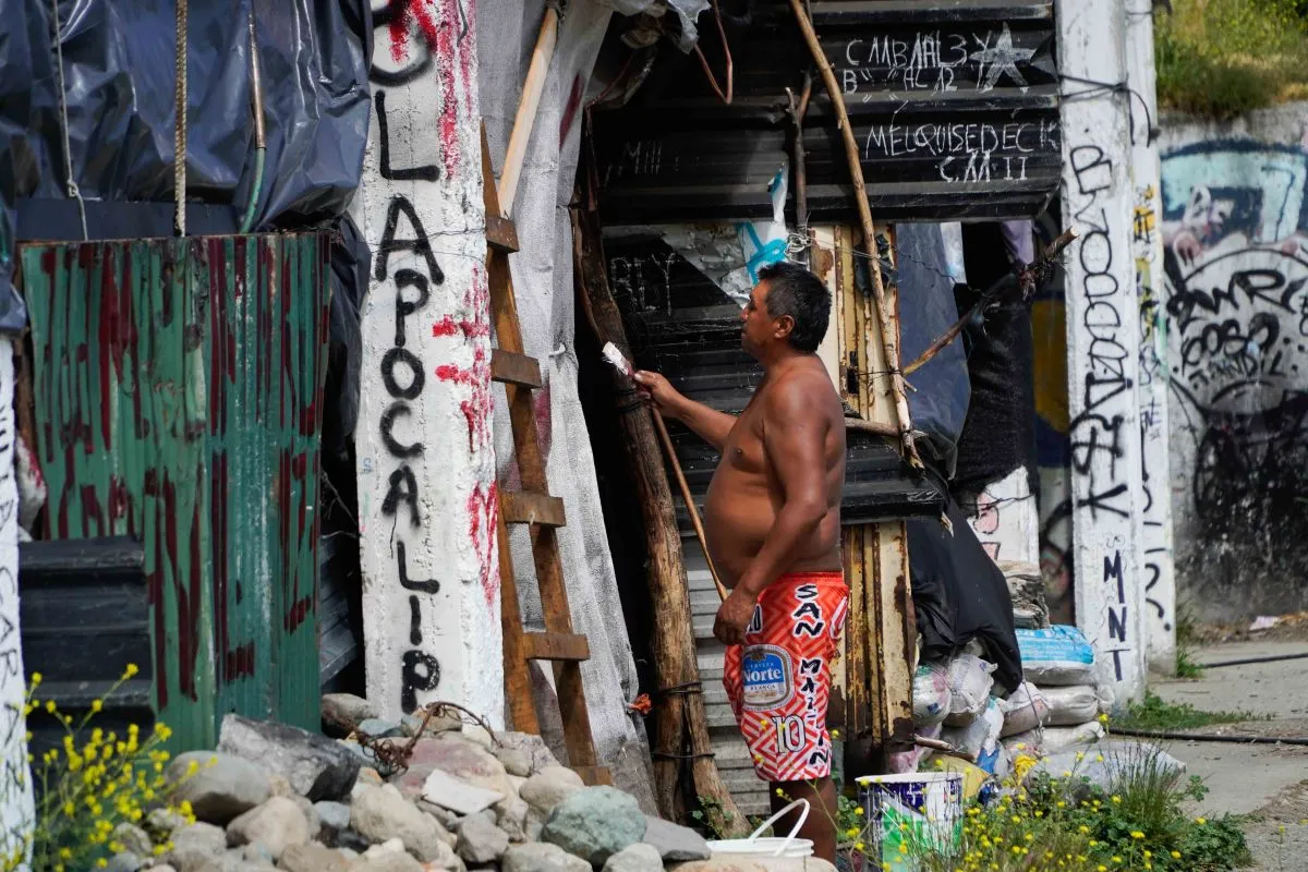 “Me crié en El Bolsón desde los 3 años. Tengo 4 hijos allá, pero hace años que no los veo. Me gustaría quedarme acá aunque sé que esto es pasajero. Si tuviera los beneficios necesarios, quizás lo consideraría a largo plazo”, comenta mientras barre el área cercana a su refugio y da las últimas pinceladas a una puerta que está pintando con los colores (rojo y blanco) "de su cuadro favorito".