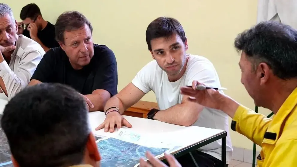 Acompañados por el Intendente de El Bolsón, Bruno Pogliano; la Secretaria de Estado de Energía, Andrea Confini; el Ministro de Desarrollo Económico y Productivo, Carlos Banacloy, representantes del SPLIF y del Comité de Emergencia, entre otros, ambos Gobernadores analizaron las últimas novedades respecto del avance del fuego no solamente en la Zona de El Bolsón y Los Manzanos, sino también del siniestro que afecta a la provincia de Chubut en Epuyén y Puerto Madryn, con similares consecuencias.