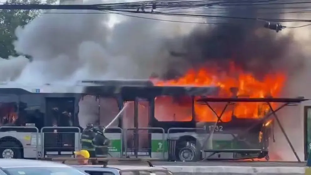 Las imágenes que circularon rápidamente por redes sociales y medios de comunicación brasileños, mostraron un panorama devastador: el el colectivo envuelto en llamas y una densa columna de humo negro elevándose al cielo, visible desde varios puntos de la ciudad.