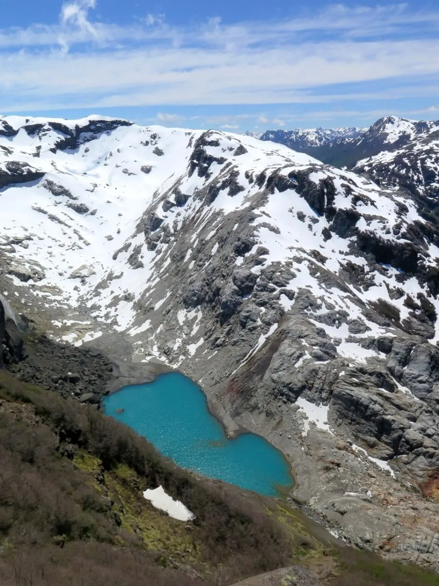 La laguna Alerce en 2022 con el glaciar a unos mil metros. Hacia 1977 estaban junto.