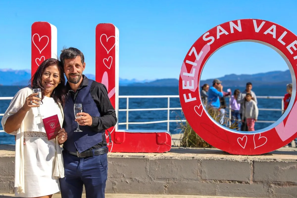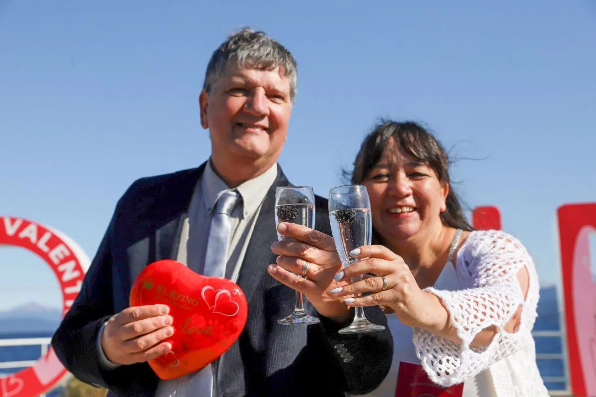Este viernes 14 de febrero se conmemora San Valentín y nuestra ciudad que enamora. Por esa razón, una decena de parejas decidieron casarse en un entorno mágico, a orillas del lago Nahuel Huapi.