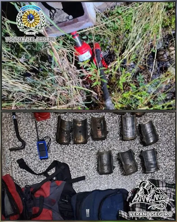 El personal de la División Seguridad Rural, en el marco del "Plan Verano Seguro", identificó a los sospechosos mientras desmantelaban los vagones. Los delincuentes ya habían reunido 18 cojinetes de bronce y cobre, con un peso total de 50 kilos, y se encontraban con tres mochilas llenas de las piezas robadas, además de un criquet, según informó el sitio Noticias del Bolsón.