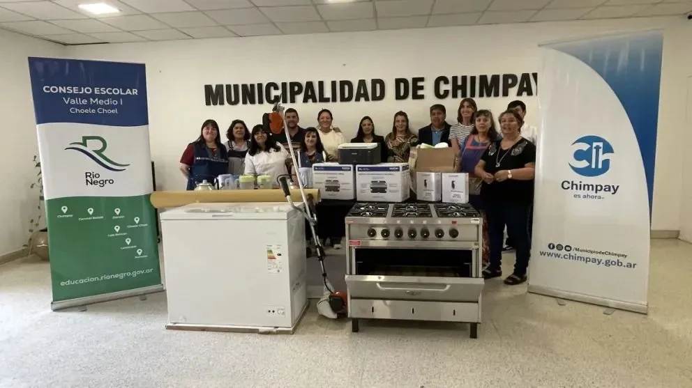 En el marco de los convenios entre el Ministerio de Educación y Derechos Humanos y los municipios, se entregaron heladeras, freezers, cocinas industriales, mixers, multiprocesadoras, ventiladores y termotanques a instituciones educativas de Luis Beltrán y Chimpay. Estos elementos fortalecen la infraestructura escolar y mejoran las condiciones de aprendizaje y desarrollo de los estudiantes.