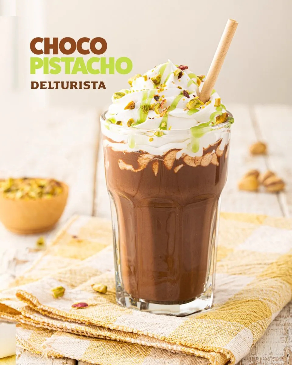 • CHOCO PISTACHO: Chocolate frío con salsa de pistacho y crema batida.