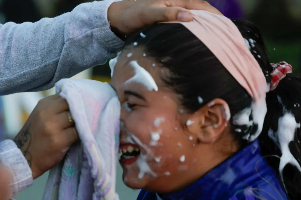 En la plaza del Centro Cívico, además de las presentaciones en el escenario principal, la premisa fue la escena de decenas de chicos y chicas que jugaron con una “lluvia de espuma”.
