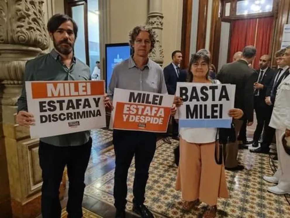 El intercambio de manifiestos verbales aconteció a la sombra del asediado escenario parlamentario, donde el bloque del FIT, formado por figuras como Christian Castillo del Partido de los Trabajadores Socialistas, y Mónica Schlotthauer de Izquierda Socialista, aprovechó la apertura de sesiones ordinarias para realizar una protesta simbólica. Previo al inicio del discurso presidencial, depositaron en los escaños del recinto carteles que acusaban al presidente Milei de "estafador, hambreador y represor", retirándose después del lugar.