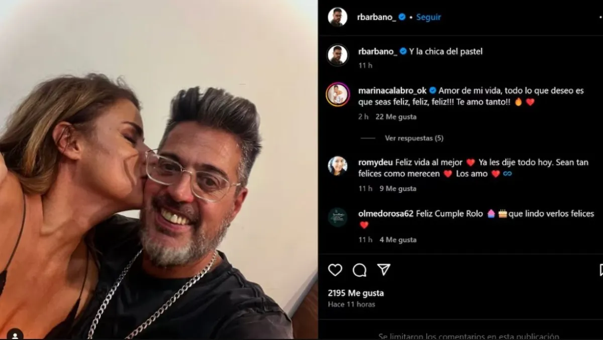 Rolando Barbano celebró la llegada de sus 50 años, por lo que organizó una fiesta rodeado de sus seres queridos. Es por eso que Marina Calabró se hizo presente, no sólo en la fiesta, sino que también en las redes sociales para saludarlo. Allí, lanzó todo su amor para él y lo que más le desea en su vida.