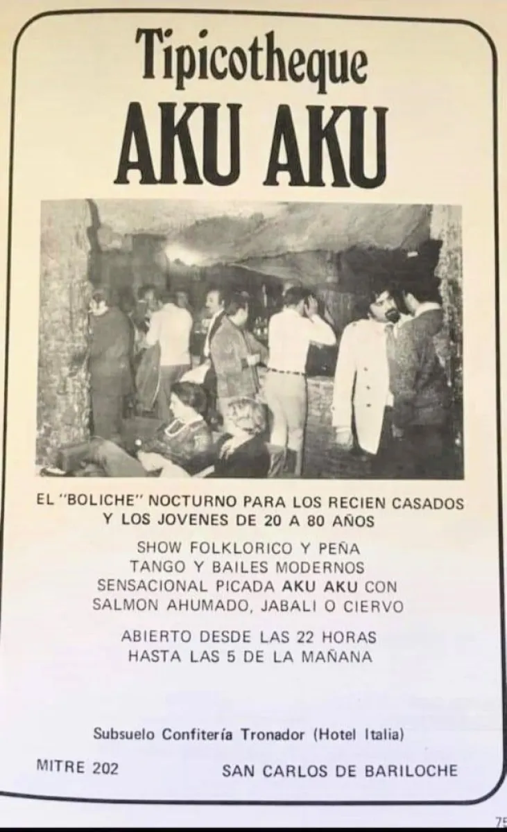 Entrada para "Aku Aku". Fuente: "Historias de Bariloche y la Patagonia" en Facebook.
