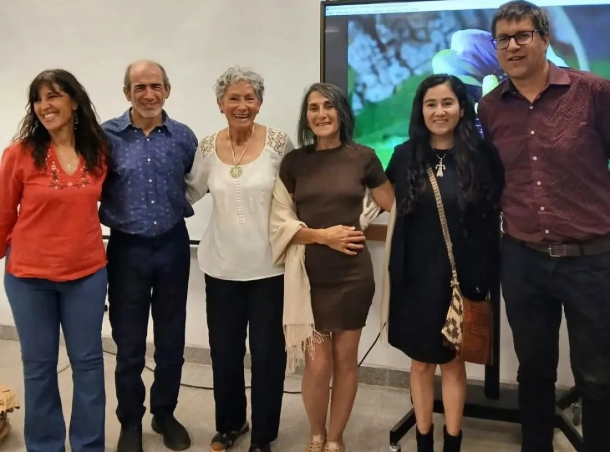 En la presentación del último sábado junto con Mabel Chrestia, subsecretaria de Extensión de la UNRN; Javier Puntieri, director de la Escuela de Producción Agropecuaria y Tecnología Ambiental de la misma universidad; la cantora mapuche Anahí Mariluan y Diego Aguiar, vicerrector de la Sede Andina de la UNRN.