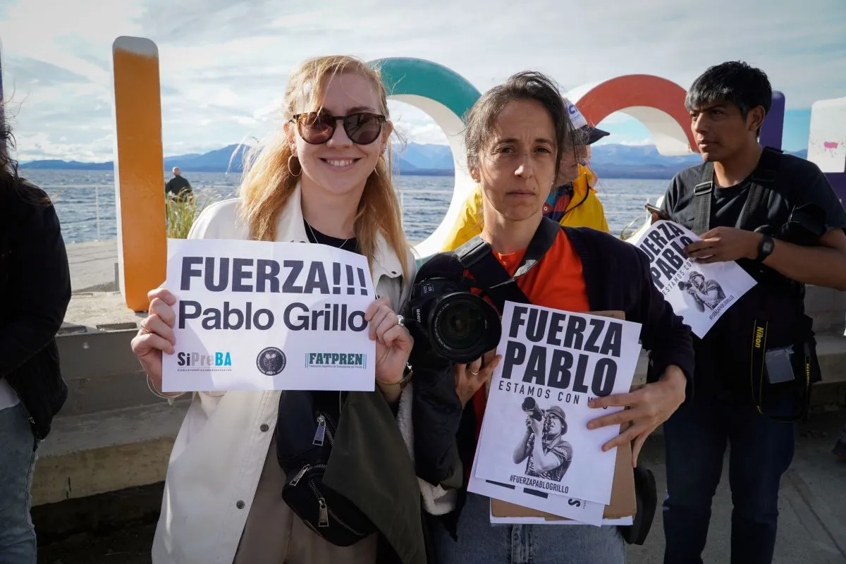 En paralelo a la medida que se lleva a cabo en Buenos Aires, los fotógrafos de Bariloche pidieron por la recuperación de su colega Grillo, quien lucha por su vida tras ser blanco del disparo de un cartucho de gas lacrimógeno, el miércoles pasado.