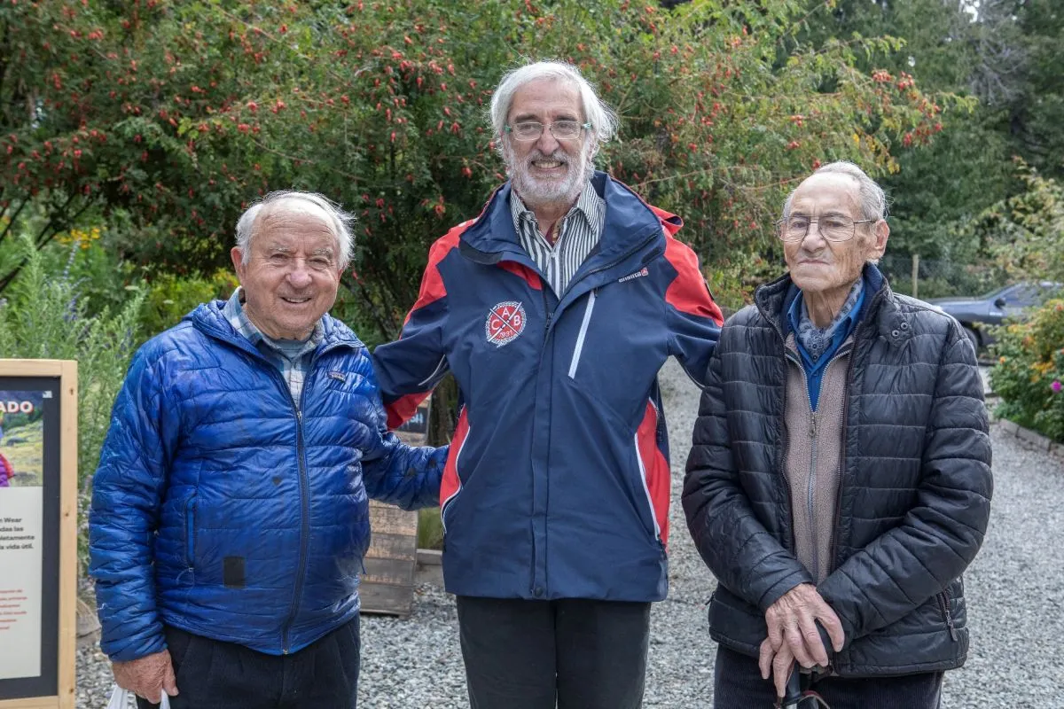 Chouinard junto al actual presidente del Club Andino, Juan Pablo Ordoñez, y quien ocupó ese rol en otros tiempos, Vicente Ojeda (foto gentileza de Patagonia).
