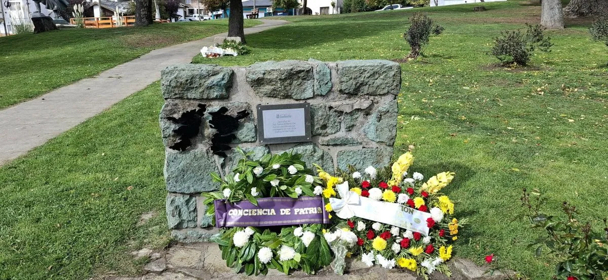 En el marco del Día del Veterano y de los Caídos en la Guerra de Malvinas se dejaron ofrendas en las placas de los caídos en la plaza Perito Moreno.