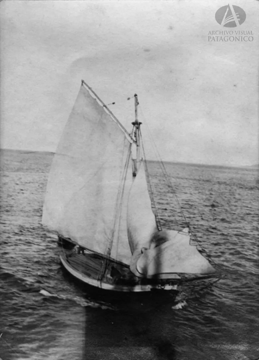 Navegación a vela en el lago alrededor de 1911. Álbum Sur Argentino en Archivo Visual Patagónico.