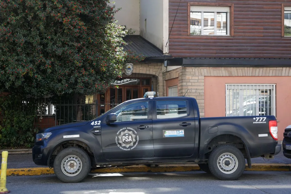 Afuera del poder judicial federal ubicado en calle San Martin 425, se mantiene un fuerte operativo de seguridad, con la presencia de al menos tres patrulleros de la Policía Federal y la Policía de Seguridad Aeroportuaria (ambas fuerzas de seguridad intervinieron en el procedimiento realizado el sábado pasado en el aeropuerto de Bariloche).