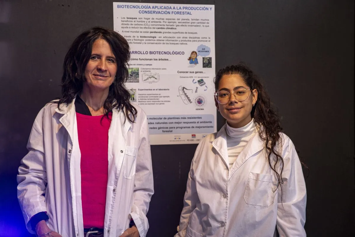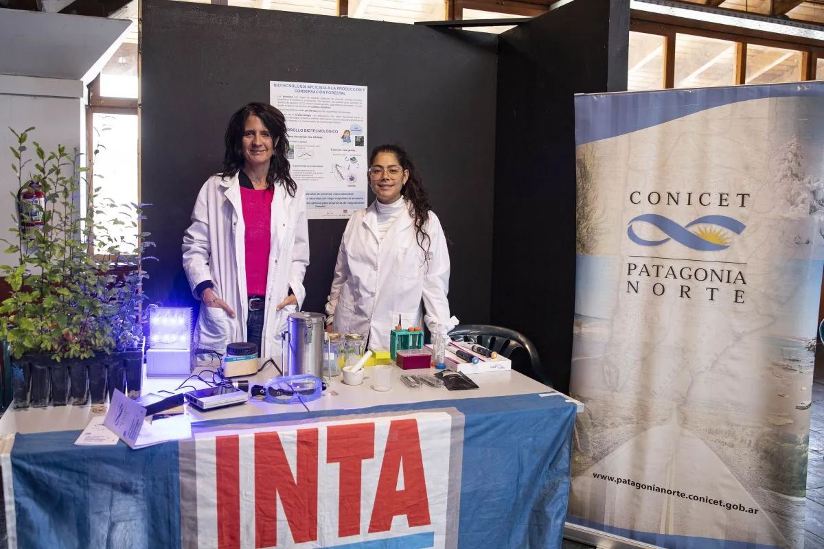 Así, en el stand hubo ejemplares pequeños de Nothofagus obliqua (roble pellín). “A la gente le contamos que, para llegar a un desarrollo biotecnológico, necesitamos explorar un montón de dimensiones distintas de lo que es el árbol. O sea, articular disciplinas, estudiando desde un lado biológico, uno ecológico, otro bioquímico, y así saber con exactitud cuál es la secuencia de ADN. Es decir, estamos ensamblando genomas, el conjunto de información genética, para después localizar esas zonas del ADN o del genoma que tienen que ver con las respuestas de los árboles a una condición particular que nos interese; por ejemplo, que crezcan en condiciones difíciles, como puede ser en determinadas temperaturas”, contó Verónica.