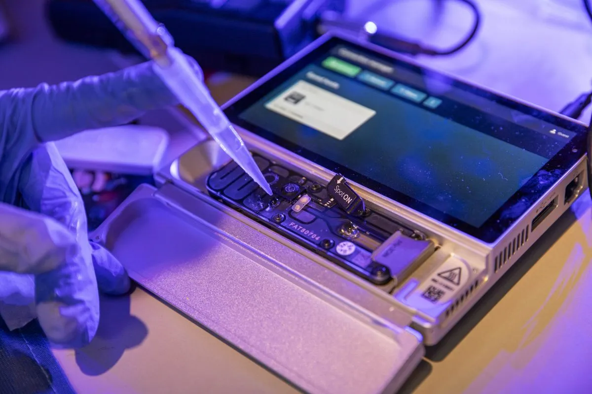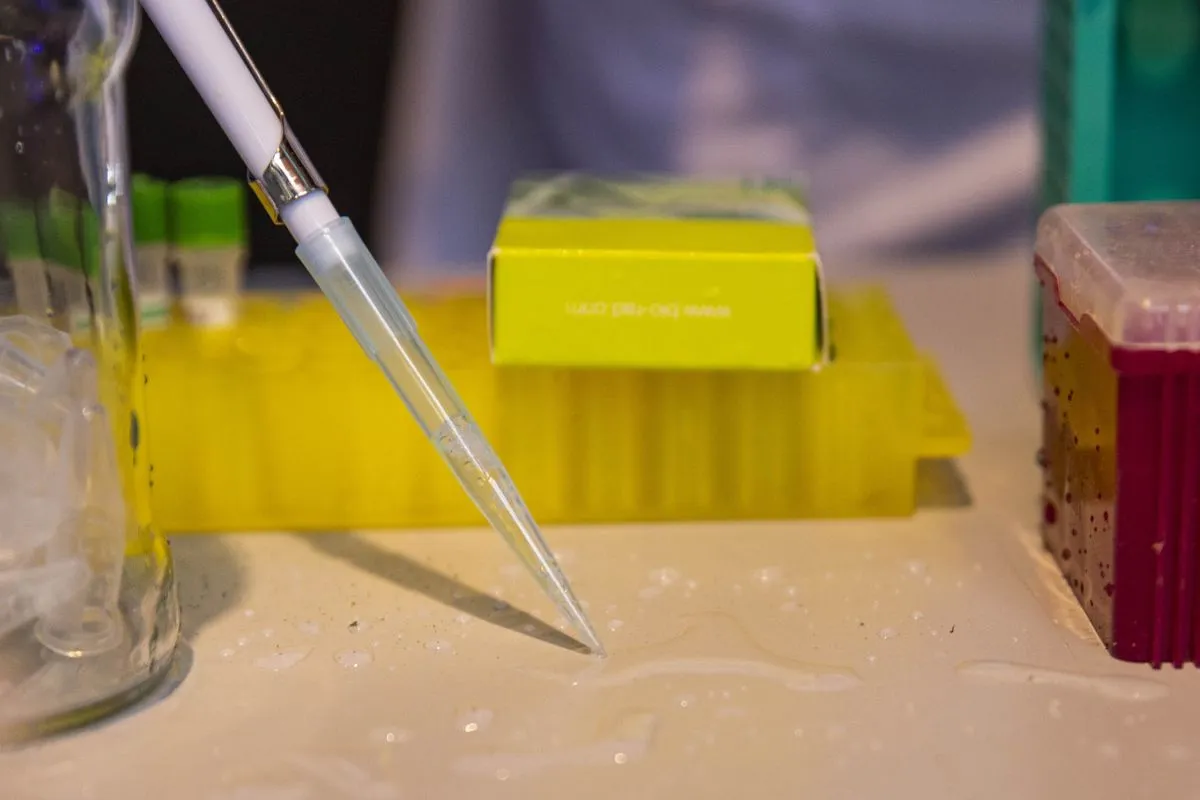 En un stand, mostraron cómo se desempeñan cotidianamente en el laboratorio y los elementos que utilizan.