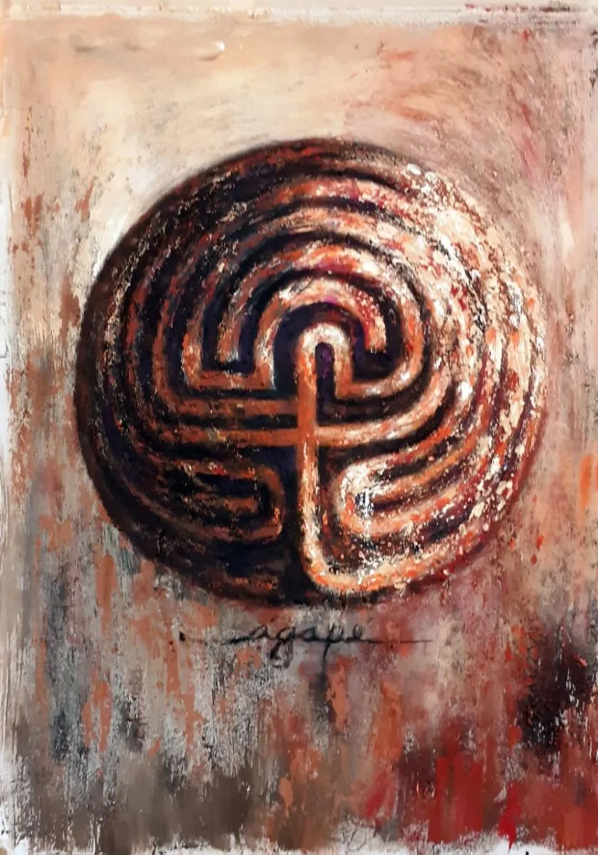 “Veo al laberinto como un símbolo del sentido del recorrido de la vida”, dice, y desarrolla la idea de una “forma laberíntica donde el humano se pierde y por momentos se encuentra”.