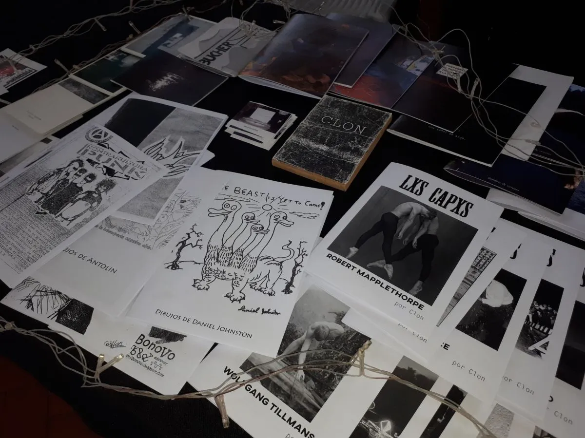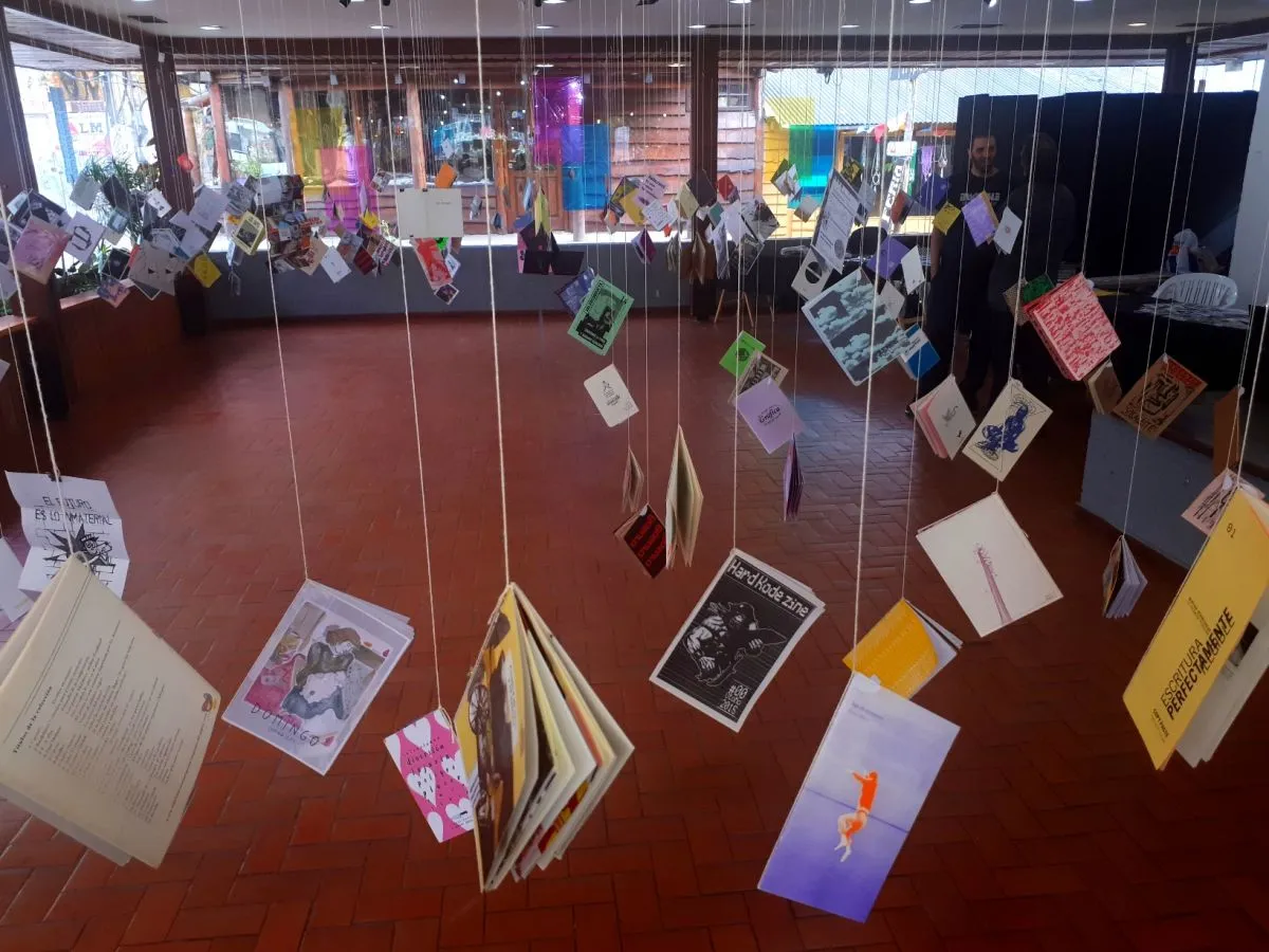 Una gran cantidad de fanzines diversos colgaban del techo, brindando la sensación de un “aguacero” cultural.