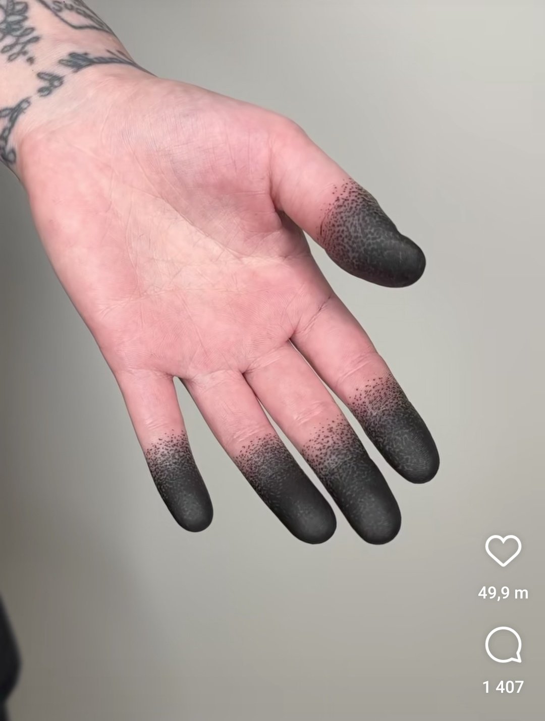 La publicación original de @porqueTTarg incluía un video de un tatuaje blackout en los dedos, donde la piel está cubierta de tinta negra sólida, creando un efecto degradado. Se trata de algo atípico para los clásicos tatuajes.