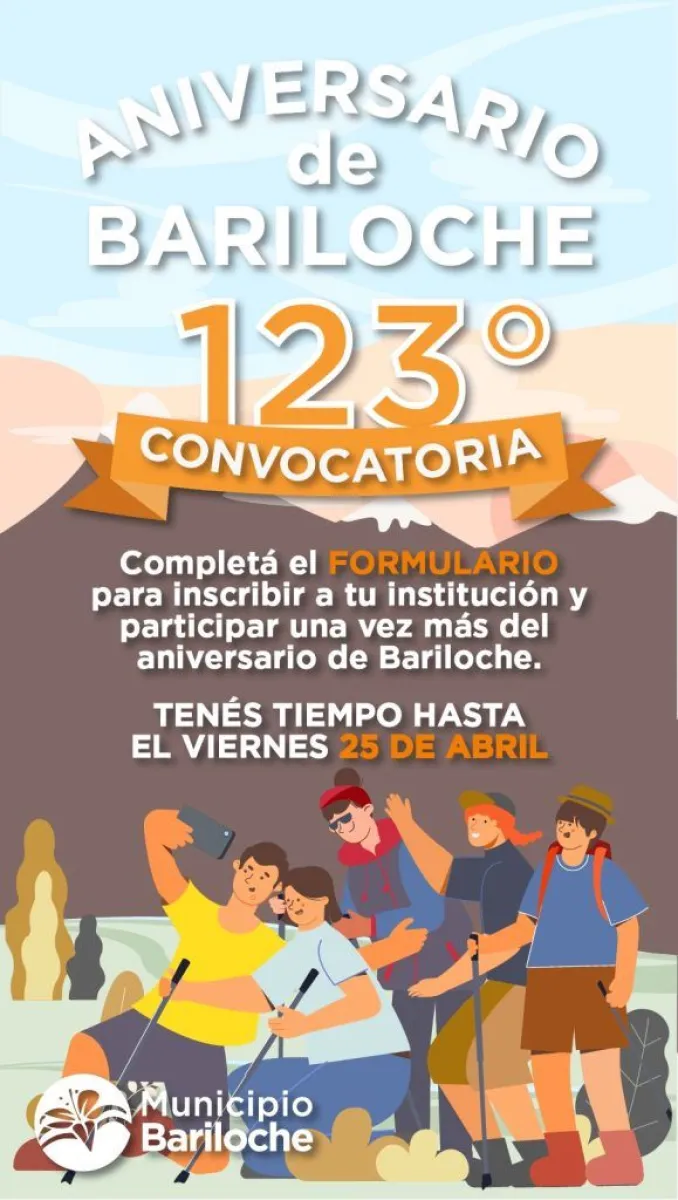 Desde el municipio de San Carlos de Bariloche recuerdan a la comunidad que aún hay tiempo de inscribirse para participar del desfile del aniversario Nº 123 de nuestra ciudad, el 3 de Mayo próximo.