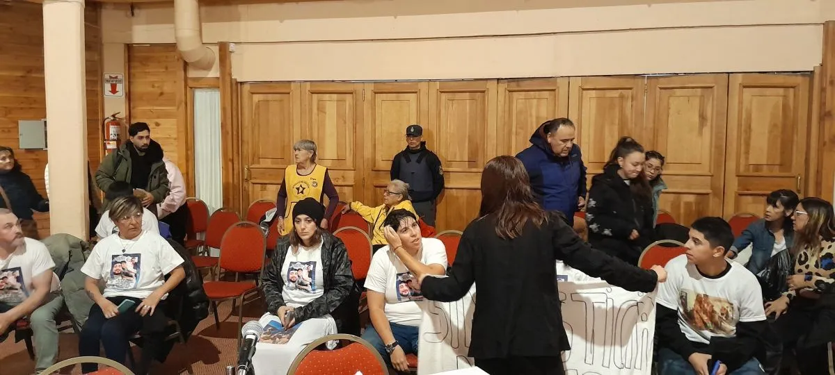 En el salón hay familiares de los hermanos Linares con pancartas exigiendo justicia por las cuatro víctimas fatales y miembros del grupo Estrellas del Neuquén.