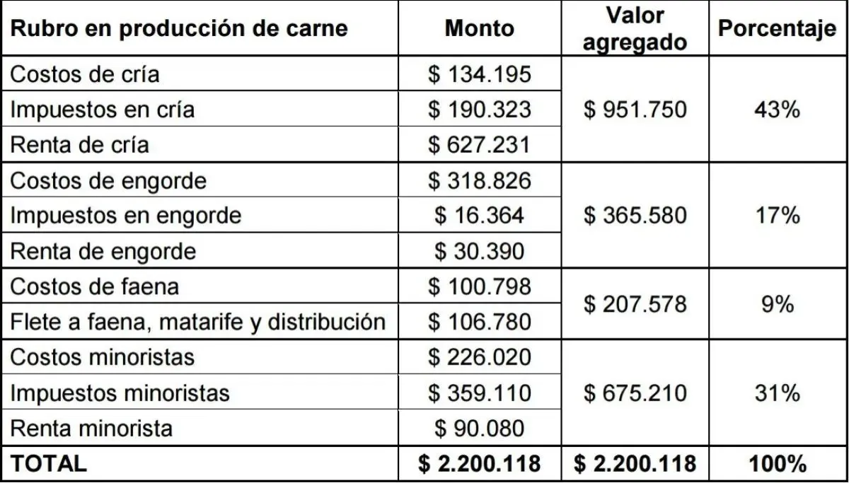 Un análisis detallado revela cómo se distribuye el valor a lo largo de la cadena productiva, desde la cría hasta la carnicería.