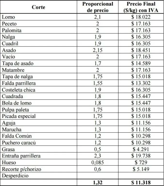 También es fundamental tener en cuenta que existen diversas variables de procesamiento y venta de carne y que cada frigorífico implementa la suya. Del mismo modo, cada carnicero implementa su propia tabla de precios.