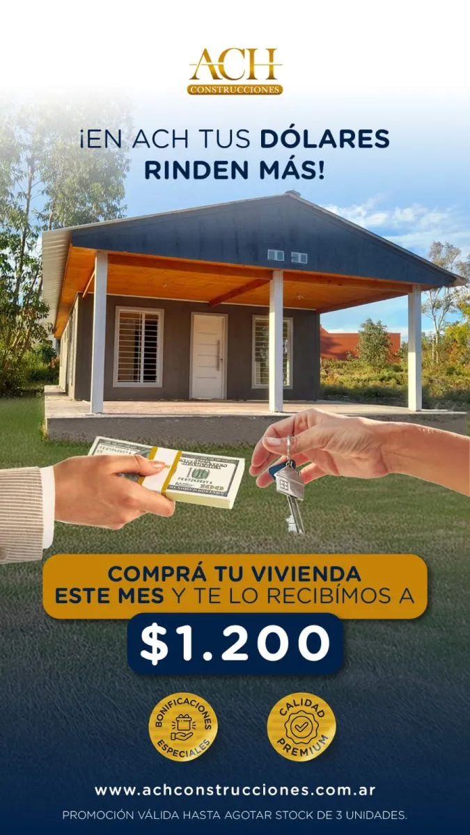 “Si querés pagar de contado y tenés dólares, ACH hoy te toma el dólar a 1200 pesos. Por ejemplo, un monoambiente de 24 m² cuesta alrededor de 9300 dólares. Es una oportunidad real para dejar de alquilar o invertir en algo propio”, concluyó.