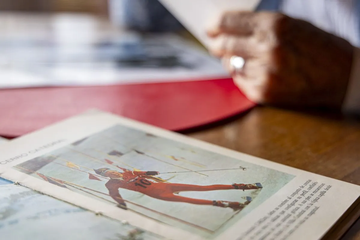 “Al ver las fotos de aquella época, río… Los esquíes no tenían puntera ni canto… ¡Llevaba ropa de lana que tejía mi mamá!”, ríe.