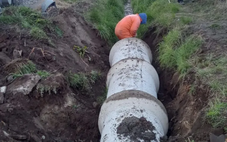 La Delegación El Cóndor llevó a cabo un importante trabajo en calle La Habana, donde se colocaron caños de hormigón con el objetivo de encauzar el agua de lluvia y prevenir inundaciones durante la temporada de invierno.