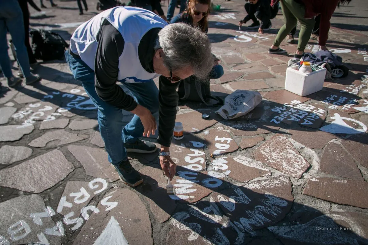 Es habitual que en cada 24 de marzo, Día Nacional de la Memoria por la Verdad y la Justicia, Marigo concurra al Centro Cívico para pintar pañuelos blancos (foto: Facundo Pardo).