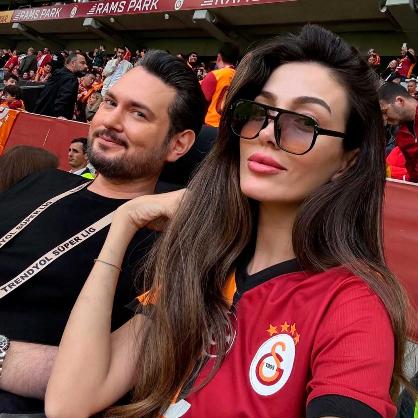 La imagen fue publicada por una cuenta de fanáticos del Galatasaray, acompañada simplemente por su nombre y un emoji de carita con lentes de sol, símbolo de “ganador”. Pero lo que más llamó la atención fue la identidad de la mujer: Özge Atalay, una influencer turca con fuerte presencia en redes y que se presenta como “Miss Turquía 2014”.