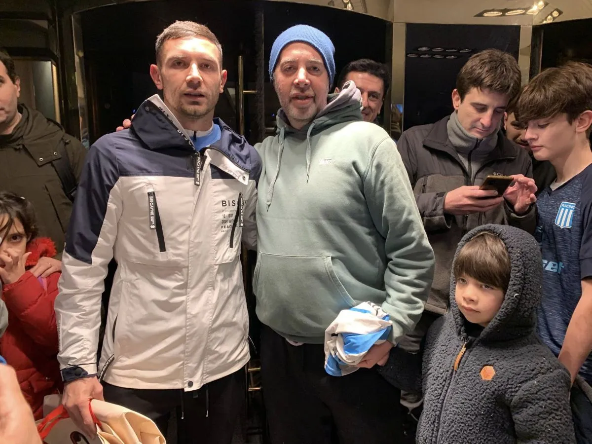 El goleador de "La Acadé" llegó a la ciudad a vacacionar y en la entrada de un conocido hotel, recibió a los hinchas de Racing de Bariloche. Le regalaron chocolates y la camiseta de la filial local.